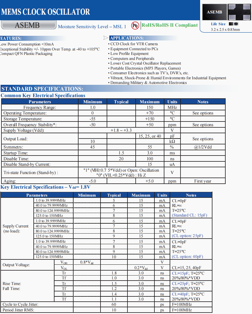 | ASEMB-14.31818MHZ-XY-T | Abracon晶振 | ASEMB | XO | 14.31818 MHz | 1.8V ~ 3.3V |