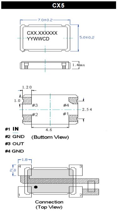 Cardinal晶振,CX5Z-A5B2C4-40-27.0D18,6G無線通信晶振尺寸圖