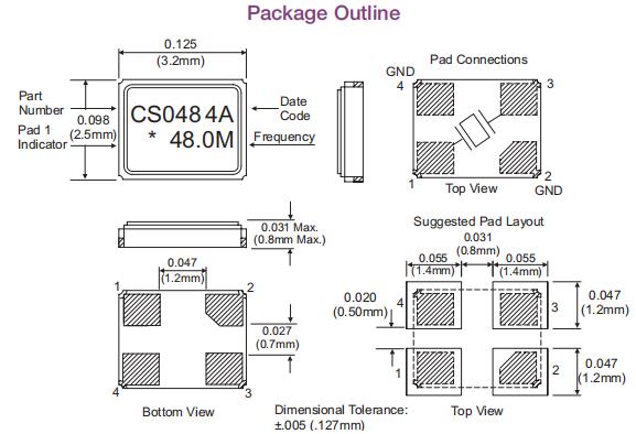 CS-048-048.0M,6G光纖通道晶振,歐美進(jìn)口晶振 尺寸圖