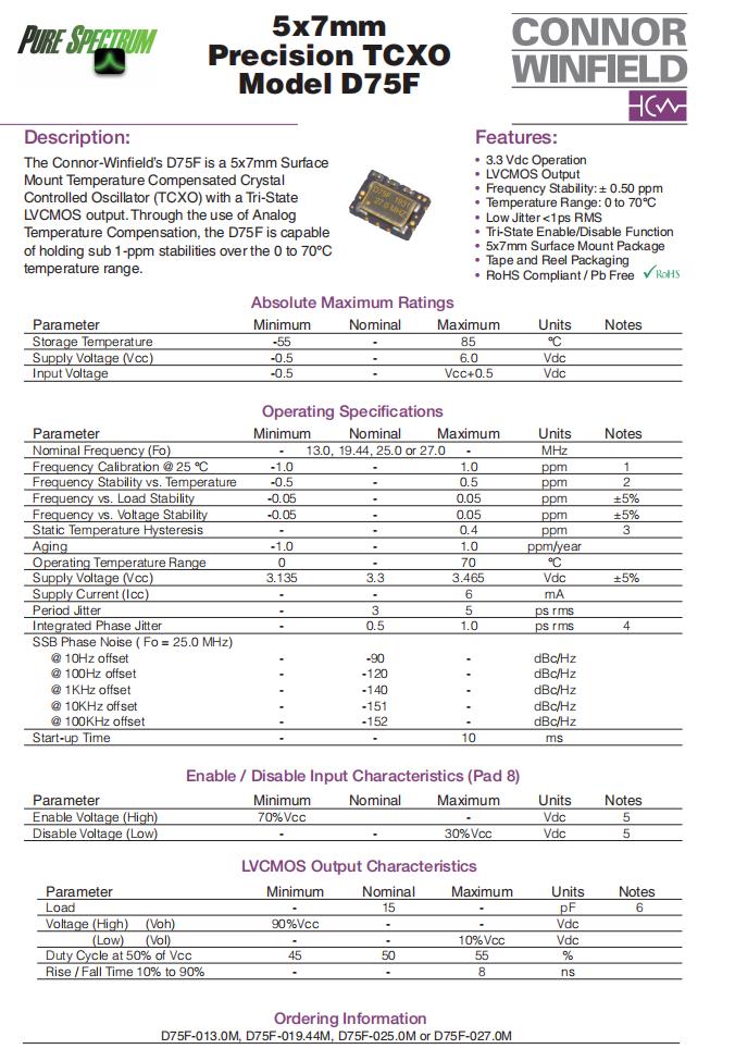D75F-027.0M,7050mm晶振,6G無線網絡晶振,ConnorWinfield晶振,美國進口晶振,D75F有源晶振,D75F-027.0M晶振,溫補晶體振蕩器,7050mm晶振,石英貼片晶振,頻率27MHz,電壓3.3V,工作溫度0~70°C,頻率穩定性0.5ppm,低抖動晶振,無鉛環保晶振,6G無線網絡晶振,移動應用晶振, 消費電子產品晶振, 便攜式電子設備晶振,網絡終端晶振.