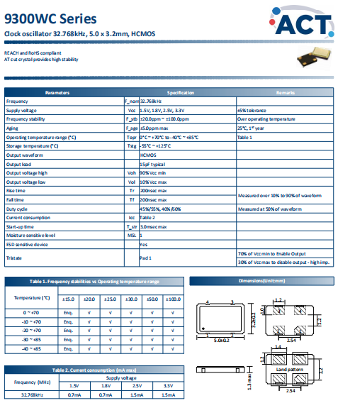 ACT晶振,9300WC晶振,SPXO有源晶振.貼片式石英晶體振蕩器,低電壓啟動功率,并且有多種電壓供選擇,比如有1.8V,2.5V,3.3V,3.8V,5V等,產(chǎn)品被廣泛應(yīng)用于,平板筆記本,GPS系統(tǒng),光纖通道,千兆以太網(wǎng),串行ATA,串行連接SCSI,PCI-Express的SDH / SONET發(fā)射基站等領(lǐng)域.符合RoHS/無鉛.