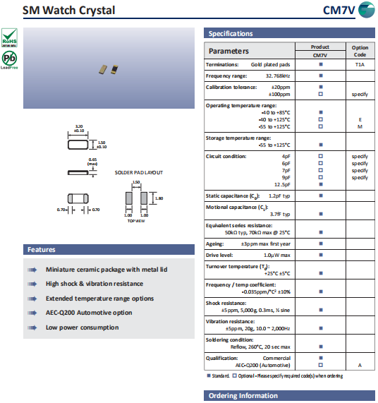 | Golledge晶振 | 單位 | CM7V晶振 | 石英晶振基本條件 |