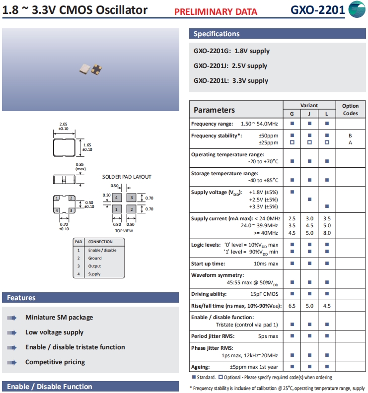 Golledge晶振,GXO-2201晶振,有源晶體振蕩器.智能手機(jī)晶振,產(chǎn)品具有高精度超小型的表面貼片型石英晶體振蕩器,最適用于移動(dòng)通信終端的基準(zhǔn)時(shí)鐘等移動(dòng)通信領(lǐng)域.比如智能手機(jī),無線通信,衛(wèi)星導(dǎo)航,平臺(tái)基站等較高端的數(shù)碼產(chǎn)品,晶振本身小型,薄型具備各類移動(dòng)通信的基準(zhǔn)時(shí)鐘源用頻率,貼片晶振具有優(yōu)良的電氣特性,耐環(huán)境性能適用于移動(dòng)通信領(lǐng)域,滿足無鉛焊接的高溫回流溫度曲線要求.
