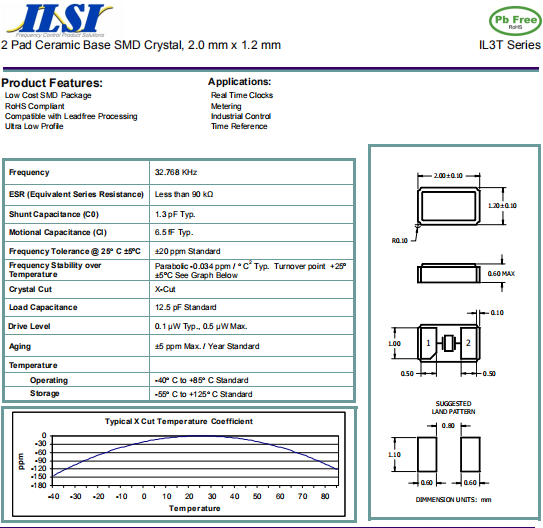 ILSI晶振,IL3T晶振,壓電石英晶體.小型表面貼片晶振型,是標(biāo)準(zhǔn)的石英晶體諧振器,適用于寬溫范圍的電子數(shù)碼產(chǎn)品,家電電器及MP3,MP4,播放器,單片機(jī)等領(lǐng)域.可對(duì)應(yīng)32.768K以上的頻率,在電子數(shù)碼產(chǎn)品,以及家電相關(guān)電器領(lǐng)域里面發(fā)揮優(yōu)良的電氣特性,滿足無鉛焊接的回流溫度曲線要求.