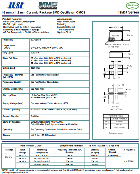 ILSI晶振,ISM37晶振,CMOS輸出振蕩器.普通貼片石英晶振外觀使用金屬材料封裝的,具有高穩(wěn)定性,高可靠性的石英晶體振蕩器,晶振外觀本身使用金屬封裝,充分的密封性能,可確保其高可靠性,采用編帶包裝,外包裝采用朔膠盤,可在自動貼片機上對應自動貼裝等優(yōu)勢