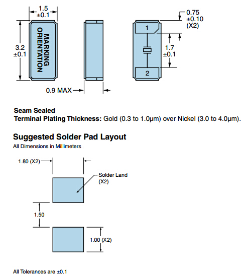 | Aging at 25°C | ±3ppm/year Maximum |