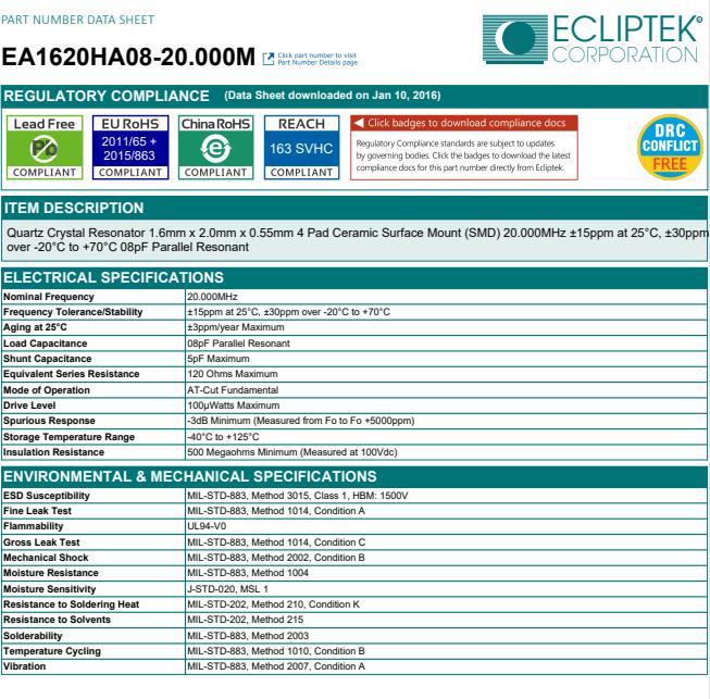 ECLIPTEK晶振,EA1620石英晶振,EA1620HA08-20.000M晶振,貼片晶振本身體積小,超薄型石英晶體振蕩器,特別適用于有目前高速發(fā)展的高端電子數(shù)碼產(chǎn)品,因?yàn)榫д癖旧硇⌒突枨蟮氖袌鲱I(lǐng)域,小型,薄型是對應(yīng)陶瓷振蕩器(偏差大)和普通的石英晶體振蕩器(偏差小)的中間領(lǐng)域的一種性價比較出色的產(chǎn)品.產(chǎn)品廣泛用于筆記本電腦,無線電話,衛(wèi)星導(dǎo)航SSD,USB,Blu-ray等用途,符合無鉛焊接的高溫回流焊曲線特性.