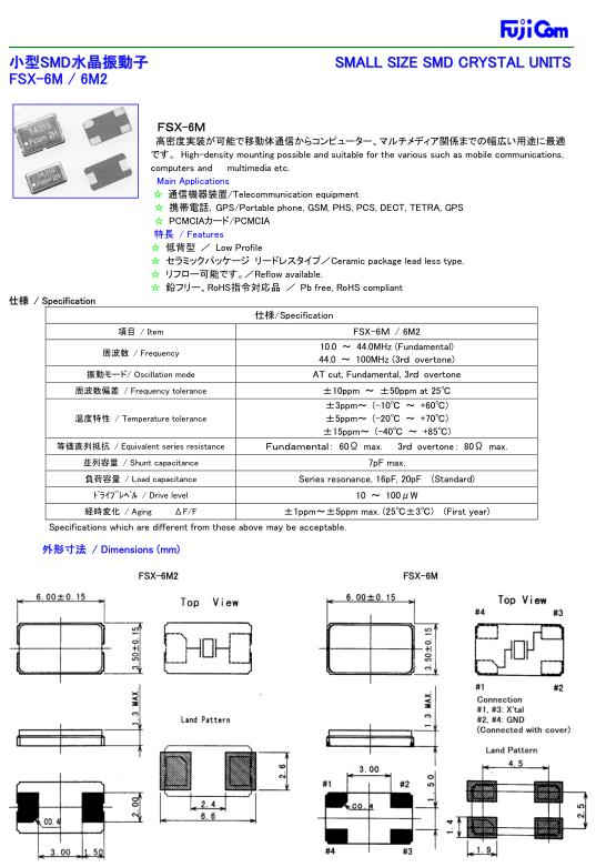 日本Fujicom晶振,FSX-6M無源貼片晶振,小型SMD晶振,貼片晶振本身體積小,超薄型石英晶體振蕩器,特別適用于有目前高速發(fā)展的高端電子數(shù)碼產(chǎn)品,因?yàn)?strong>貼片無源晶體本身小型化需求的市場領(lǐng)域,小型,薄型是對(duì)應(yīng)陶瓷振蕩器(偏差大)和普通的石英晶體振蕩器(偏差小)的中間領(lǐng)域的一種性價(jià)比較出色的產(chǎn)品.產(chǎn)品廣泛用于筆記本電腦,無線電話,衛(wèi)星導(dǎo)航SSD,USB,Blu-ray等用途,符合無鉛焊接的高溫回流焊曲線特性.