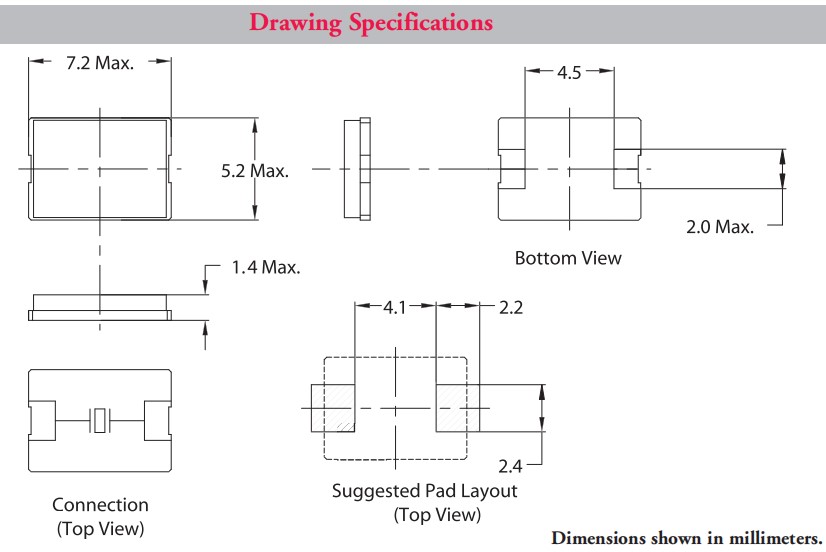 NF5-48.000-A-B-B-B-20pF,7050mm,美國NEL耐爾晶振,高可靠性晶振,尺寸圖