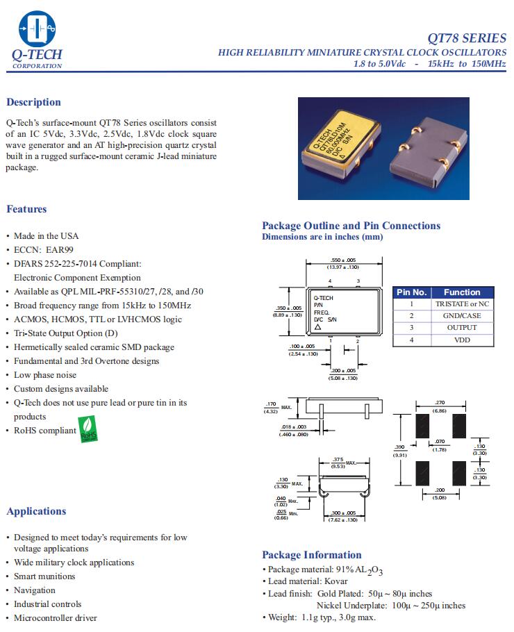 QT78HCD11M-75.000MHz|6G發(fā)射器晶振|低相位噪聲晶振, Q-Tech美國(guó)晶振,QT78有源晶振,QT78HCD11M-75.000MHz晶振,進(jìn)口貼片晶振,石英晶體振蕩器,低相位噪聲晶振,頻率75MHz,工作溫度-40~85°C,電壓5V,頻率穩(wěn)定性50ppm,基頻和第三泛音設(shè)計(jì),耐高溫晶振,無鉛環(huán)保晶振,6G發(fā)射器晶振,軍用時(shí)鐘應(yīng)用晶振, 智能彈藥應(yīng)用晶振,工業(yè)控制應(yīng)用晶振,微控制器驅(qū)動(dòng)器應(yīng)用晶振.