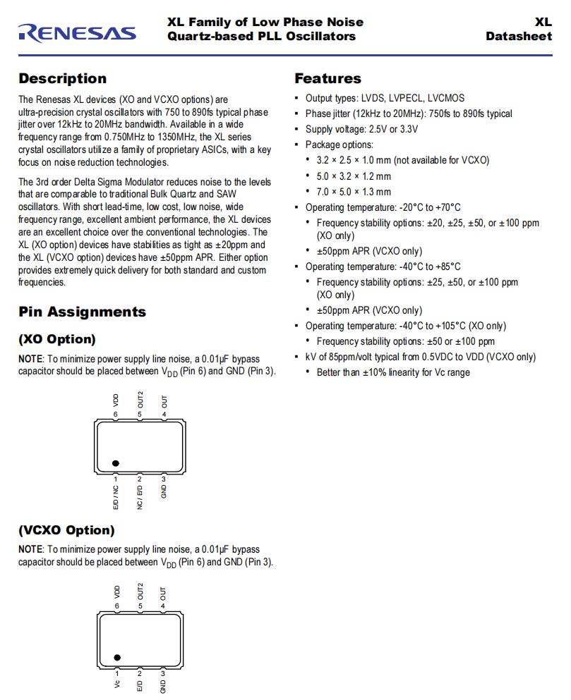 | XLH736025.750000X | Renesas Electronics America Inc | XL | 25.75 MHz | LVCMOS | 3.3V | ±25ppm |