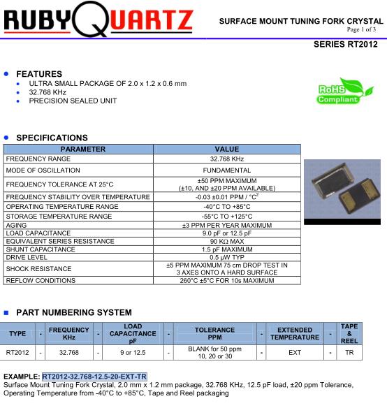 RT2012無(wú)源晶體,盧柏歐美晶體,RT2012-32.768-12.5-20-EXT-TR超小型晶振,32.768K時(shí)鐘晶體具有小型,薄型,輕型的貼片晶振表面音叉型晶體振蕩器,產(chǎn)品具有優(yōu)良的耐熱性,耐環(huán)境特性,可發(fā)揮晶振優(yōu)良的電氣特性,符合RoHS規(guī)定,滿足無(wú)鉛焊接的高溫回流溫度曲線要求,金屬外殼的封裝使得產(chǎn)品在封裝時(shí)能發(fā)揮比陶瓷振蕩器外殼更好的耐沖擊性.