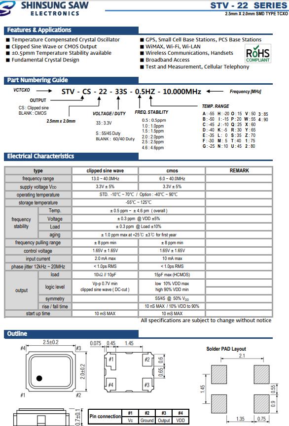 SHINSUNG韓國晶振,STV-22無線通信振蕩器,STV-CS-22-33S-0.5HZ-12.000MHz晶振,有源晶振,是指晶體本身起振需要外部電壓供應(yīng),起振后可直接驅(qū)動CMOS集成電路,產(chǎn)品本身已實現(xiàn)與薄型IC(TSSOP封裝,TVSOP封裝)同樣的1mm厚度,斷開時的消費(fèi)電流是15µA以下,編帶包裝方式可對應(yīng)自動搭載及IR回流焊接(無鉛對應(yīng))產(chǎn)品有幾種電壓供選1.8V,2.5V,3V3.3V,5V,以應(yīng)對不同IC產(chǎn)品需要