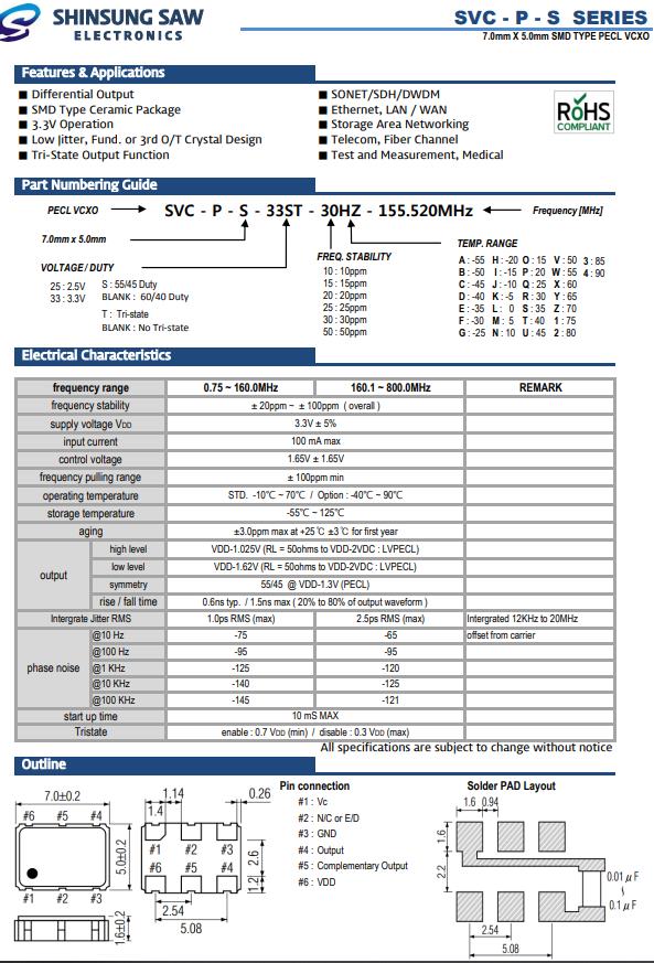 韓國新松晶振,SVC-P-S有源晶振,SVC-P-S-33ST-30HZ-120.000MHz晶振,小型SMD有源晶振,從最初超大體積到現(xiàn)在的7050mm,6035mm,5032mm,3225mm,2520mm體積,有著翻天覆地的改變,體積的變小也使產(chǎn)品帶來了更高的穩(wěn)定性能,接縫密封石英晶體振蕩器,精度高,覆蓋頻率范圍寬的特點(diǎn),SMD高速自動安裝和高溫回流焊設(shè)計(jì),Optionable待機(jī)輸出三態(tài)輸出功能,電源電壓范圍:1.8V~5V,高穩(wěn)定性,低抖動,低功耗,主要應(yīng)用領(lǐng)域:無線通訊,高端智能手機(jī),平板筆記本W(wǎng)LAN,藍(lán)牙,數(shù)碼相機(jī),DSL和其他IT產(chǎn)品的晶振應(yīng)用,三態(tài)功能,PC和LCDM等高端數(shù)碼領(lǐng)域,符合RoHS/無鉛.
