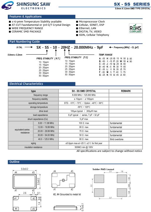 SHINSUNG晶振,SX-SS無源晶體,SX-SS-10-20HZ-16.000MHz-6pF晶振,智能手機晶振,產品具有高精度超小型的表面貼片型石英晶體振蕩器,最適用于移動通信終端的基準時鐘等移動通信領域.比如智能手機,無線通信,衛星導航,平臺基站等較高端的數碼產品,晶振本身小型,薄型具備各類移動通信的基準時鐘源用頻率,貼片晶振具有優良的電氣特性,耐環境性能適用于移動通信領域,滿足無鉛焊接的高溫回流溫度曲線要求.