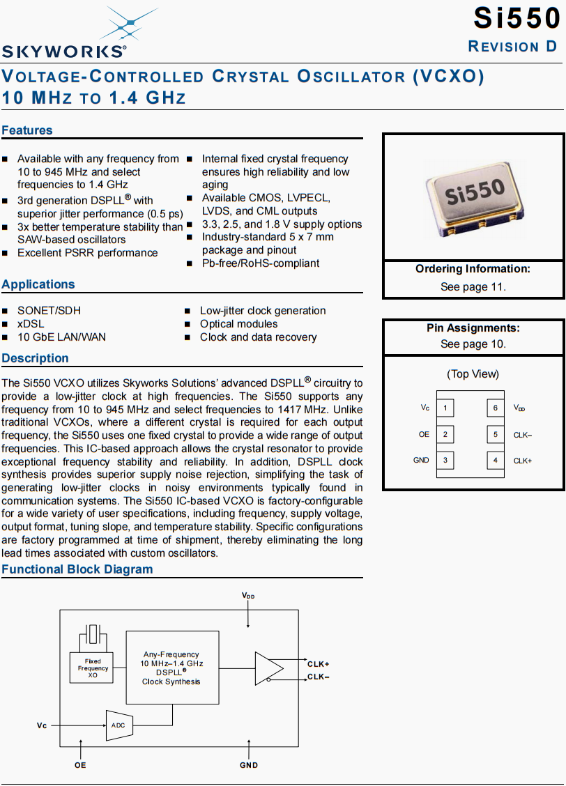 | 536BB106M250DGR | Skyworks晶振 | Si536 | XO | 106.25 MHz | LVDS | 3.3V | ±20ppm |