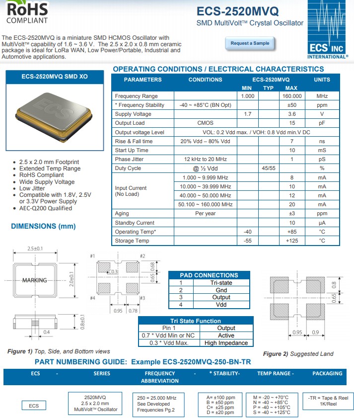 | ECS-2520S33-500-FN-TR | ECS Crystal | ECS-2520S | 50MHz | -40°C ~ 85°C |