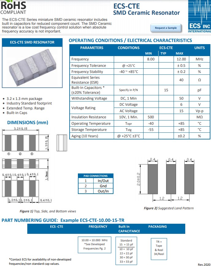 ECS-CTE-12.00-10-TR | 12 MHz | ±0.5% | -40°C ~ +85°C |