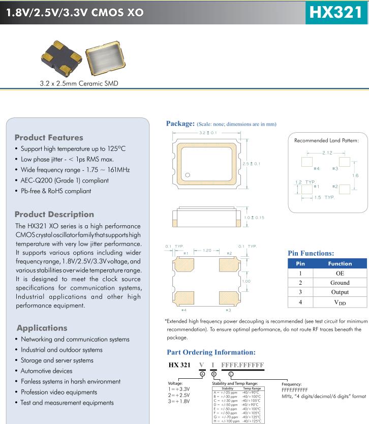 更多>>Diodes編碼HX321VI16.000000很適合應用于惡劣環境下無風扇系統,CEERA晶振