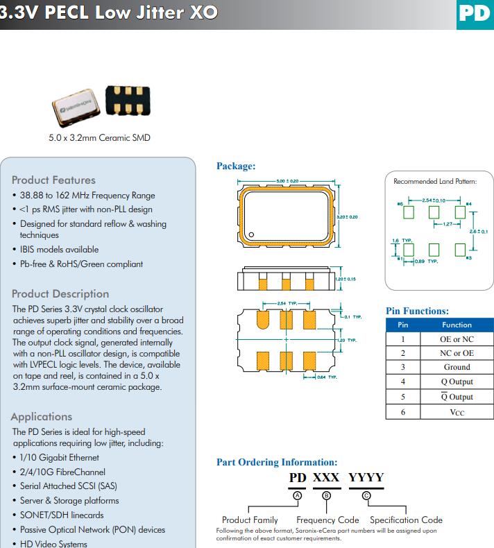 更多>>PD5000001是一款具備卓越穩定性能的時鐘振蕩器,適用于高清視頻系統,ECERA品牌