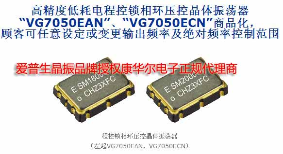 日本著名的石英貼片晶振生產企業,【精工愛普生公司】愛普生株式會社發布最新公開信息,研發已久的低功耗精度高的程控鎖相壓控晶體振蕩器【VCXO】【VG7050EAN】【VG7050ECN】現將民用化,并且已成功出樣。在2014年初接受訂貨,這兩個料號的產品特點在于可以由于使用者自己隨意設定變更輸出頻率,以及任意的頻率控制,這一項的突破將使很大的對電路設計,以及產品開發,研發人員帶來很大的幫助與應用。
