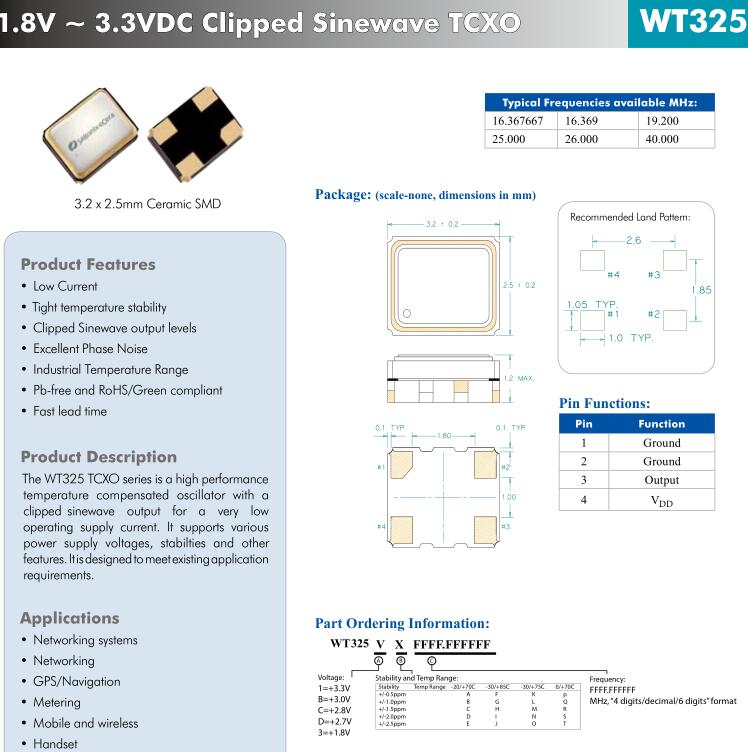 更多>>亞陶開發(fā)出溫度穩(wěn)定性能極好的TCXO振蕩器WT3253F0026.000000,用于網(wǎng)絡(luò)系統(tǒng),ECERA晶振