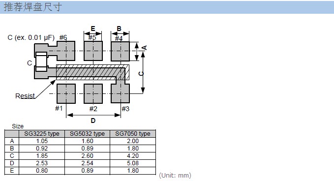 3225 : 3.2×2.5×1.05mm Typ. 5032 : 5.0×3.2×1.0mm Typ. 7050 : 7.0×5.0×1.4mm Typ. |