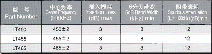 | 2-3 | 中心頻率 | Fo=462(460) ±2KHz | ||||
