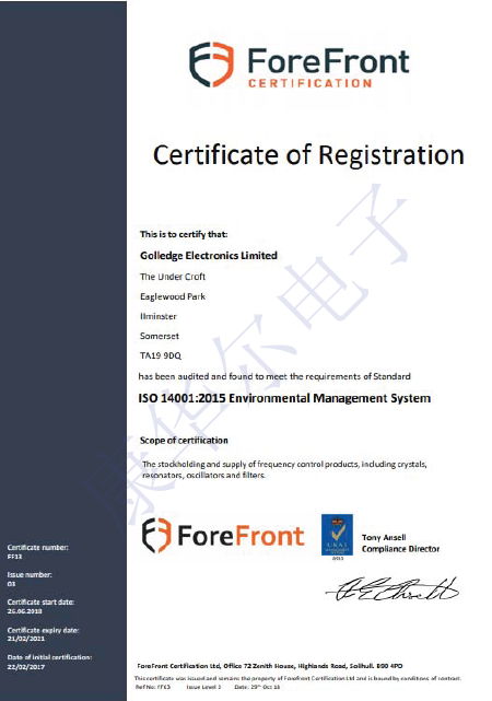 更多>>英國Golledge Crystal原廠的ISO14001環(huán)境質(zhì)量證書