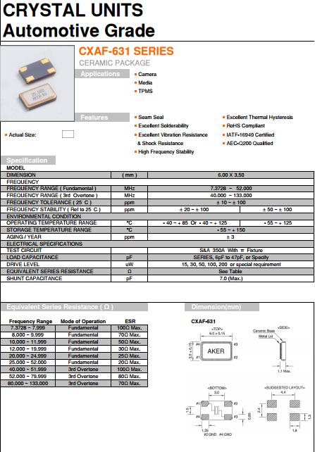 首頁臺產(chǎn)晶振AKER晶振,安碁諧振器,CXAF-631水晶振子